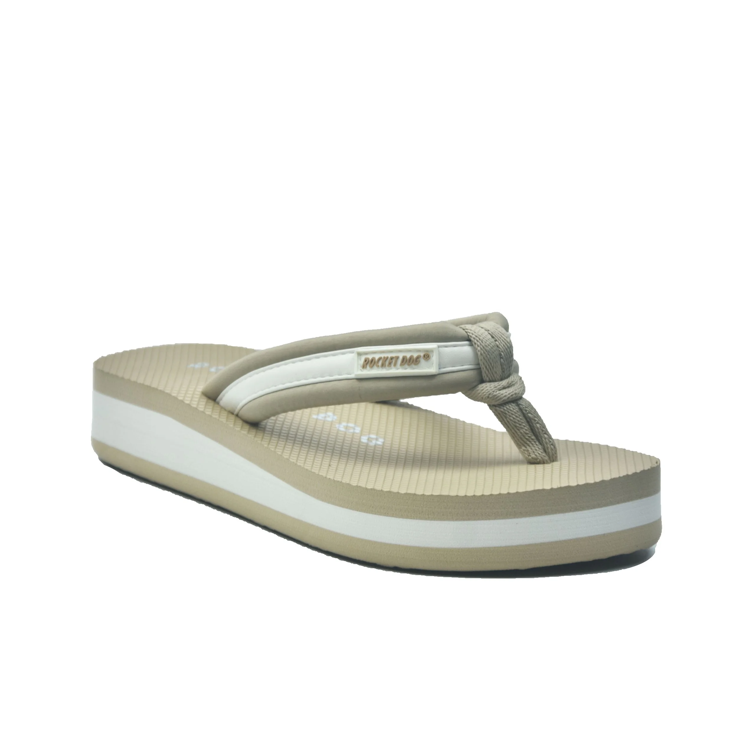 PADDED STRAP THONG STYLE WITH CONTRAST STRIPE TRIM ON TEXTURED CUSHIONED INSOLE AND FEATHERWEIGHT EVA MINI WEDGE WITH MATCHING CONTRAST STRIPING